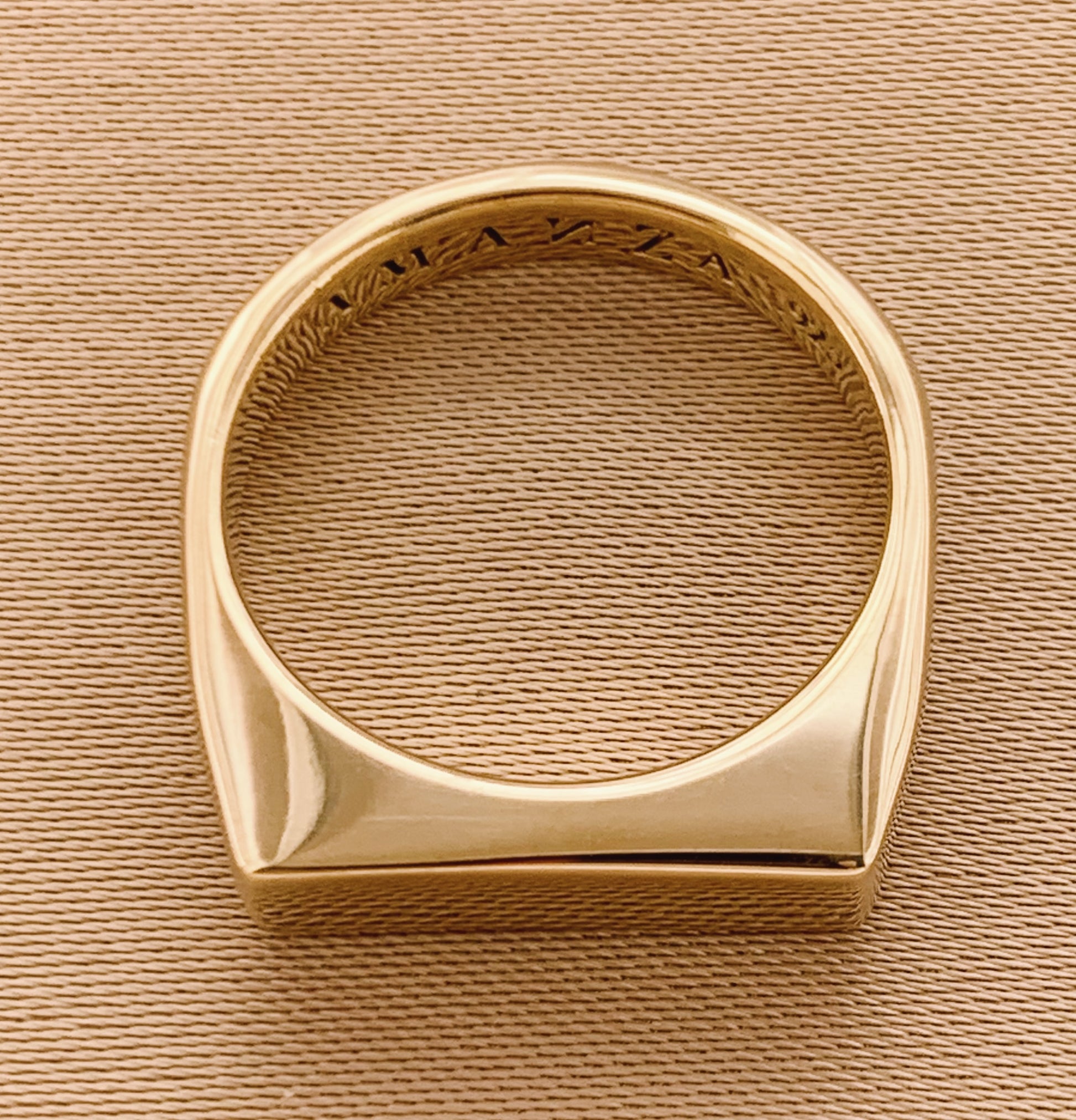 Un anillo minimalista con banda plana. Opción personalizable disponible (15-30 días hábiles de producción).