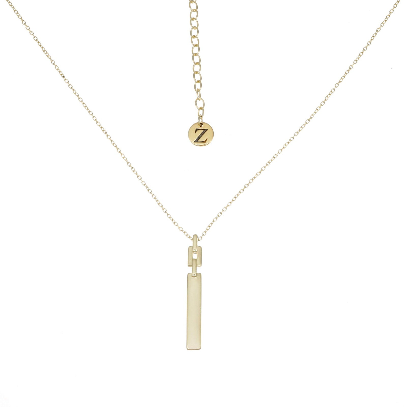 Cadena delicada con un dije rectangular alargado y un detalle grabado minimalista.