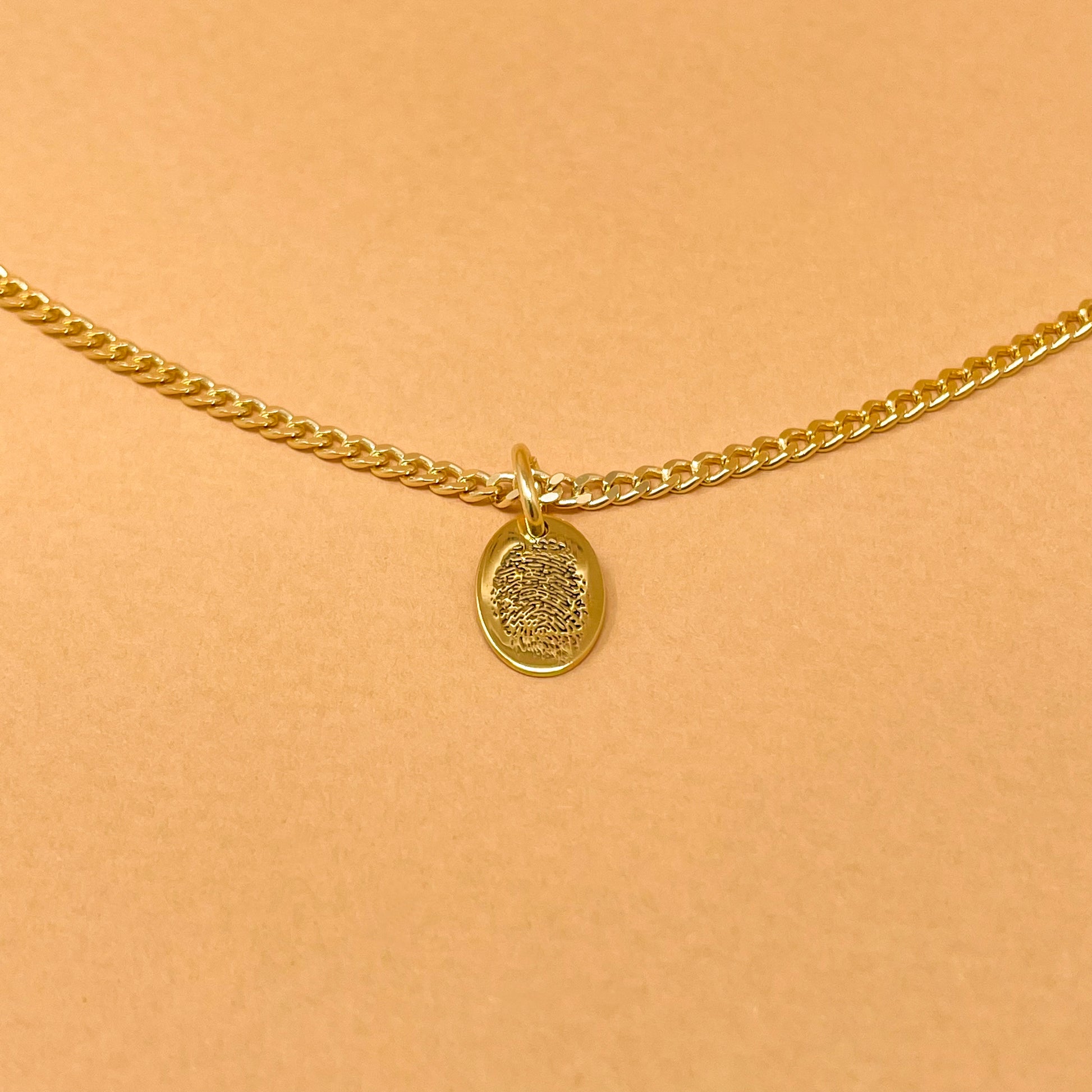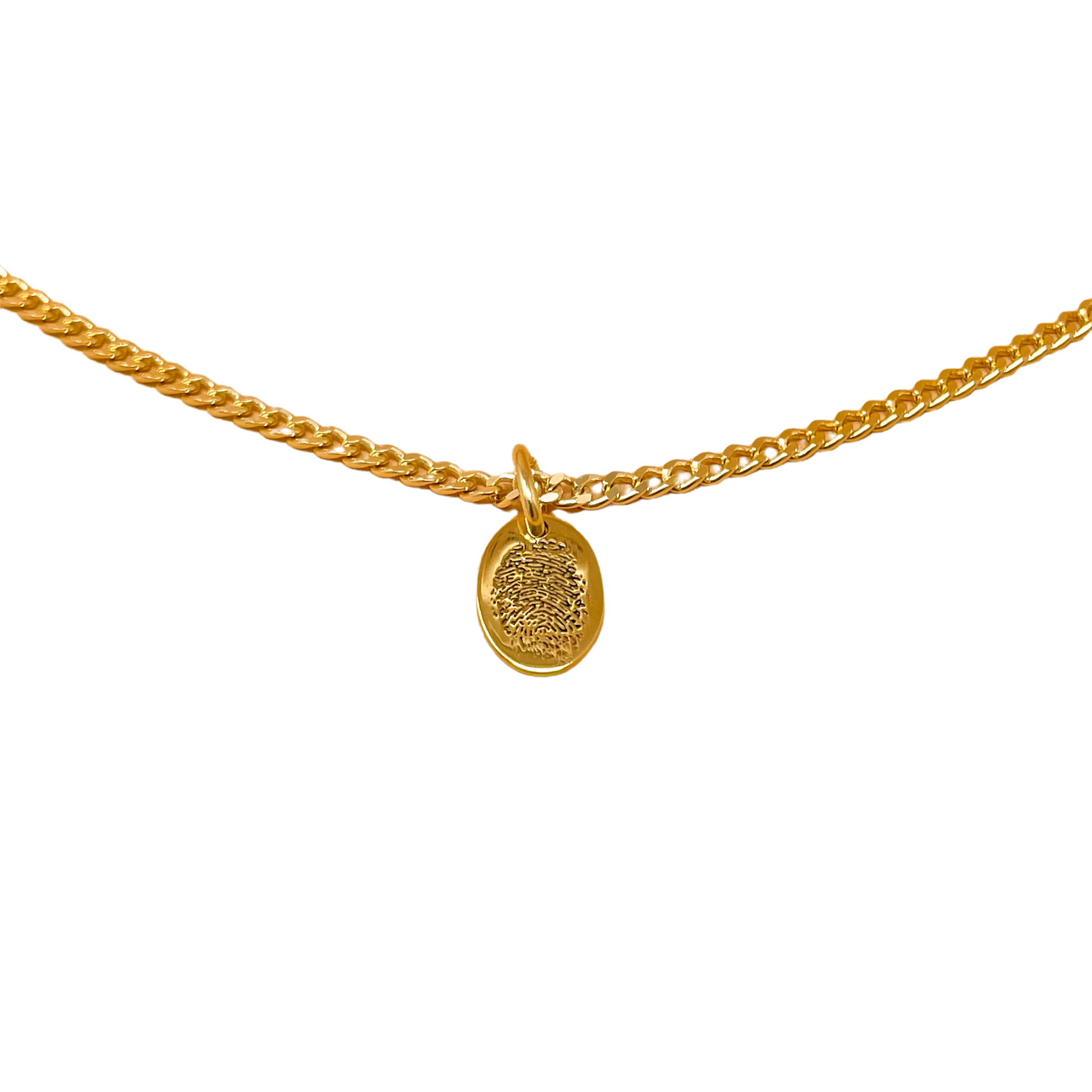 A tight-linked chain with a customizable charm – add up to 4 fingerprints. Chain: 45 cm. Charm: 1 cm x 0.8 cm.