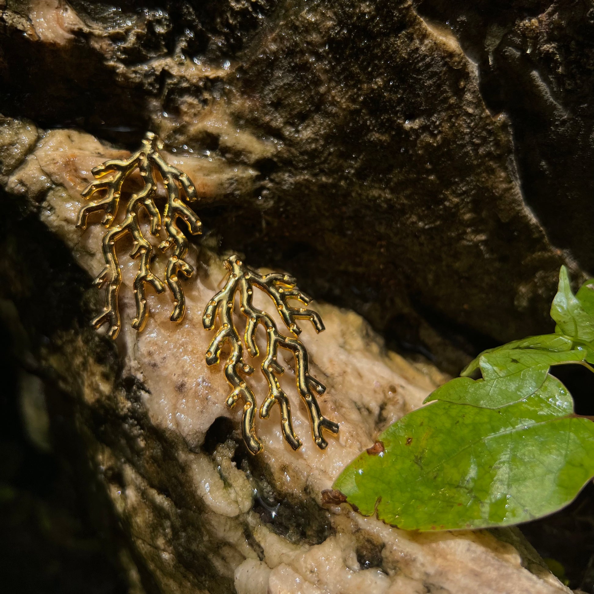 Part of our Corales Collection. Electroformed statement earrings – lightweight yet bold. Size: 5 cm x 3 cm. Weight: 7g each.