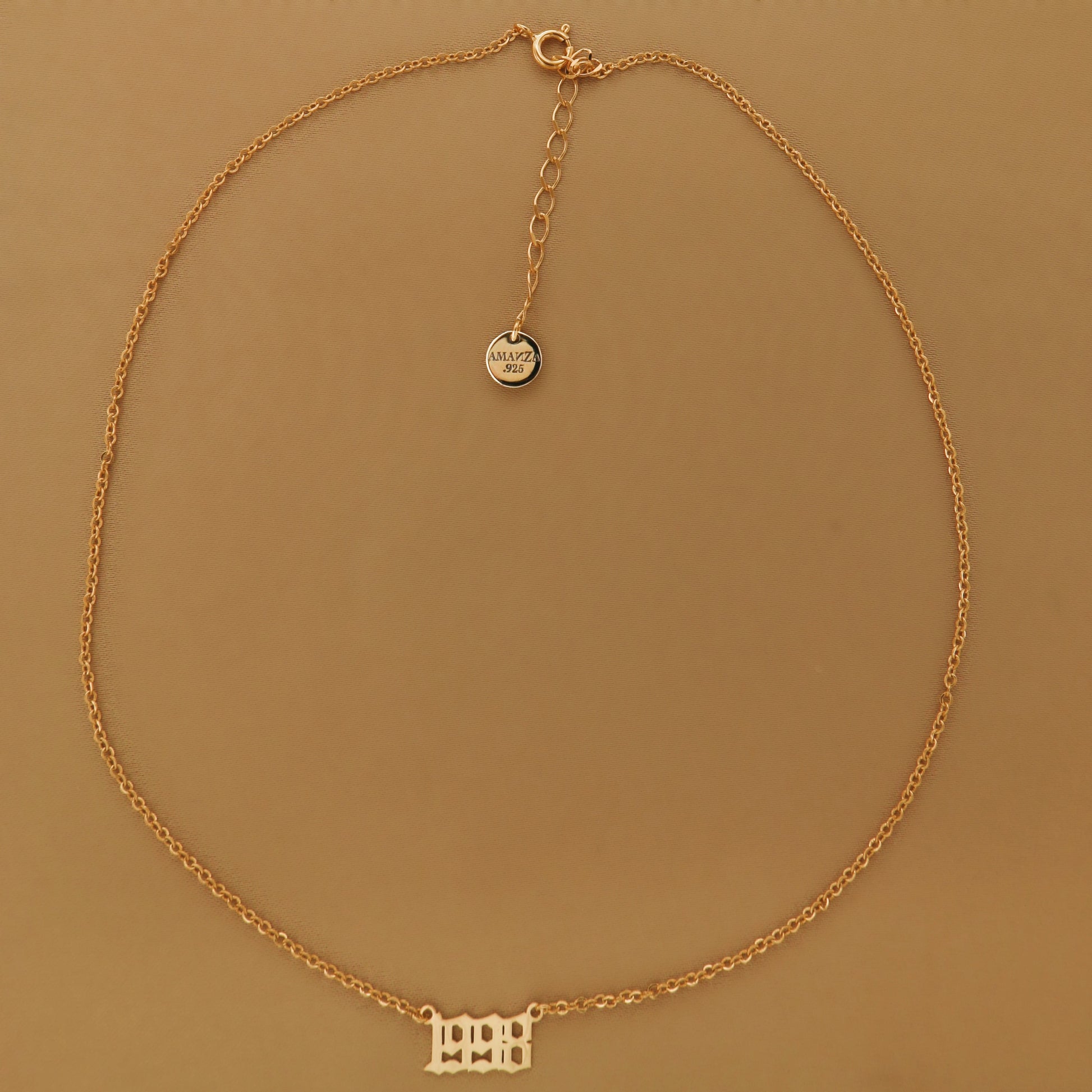 A dainty chain with a customizable charm – add your birth year in gothic font. Chain: 40 cm + 5 cm extensible. Charm: 0.6 cm x 1 cm.